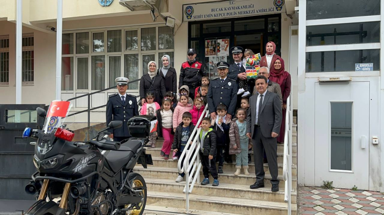 Bucak İlçe Müftülüğünde görevli Şube Müdürü İlyas Akbaba, Mehmet Akif Ersoy 4-6 Yaş Kur’an Kursu öğrencileri ve öğreticileriyle birlikte, Bucak İlçe Emniyet Müdürlüğü’ne ziyarette bulundu. İlçe Emniyet Müdürü Nail Çelik tarafından karşılanan öğrenciler, güvenlik güçlerinin kullandığı ekip araçlarını da inceleyip, çeşitli aktivitelerle eğlenceli bir zaman geçirdi.
