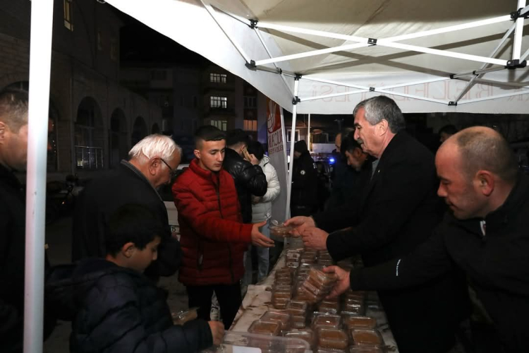 Cami çıkışında Bucak Belediyesi tarafından vatandaşlara helva dağıtımı yapıldı.