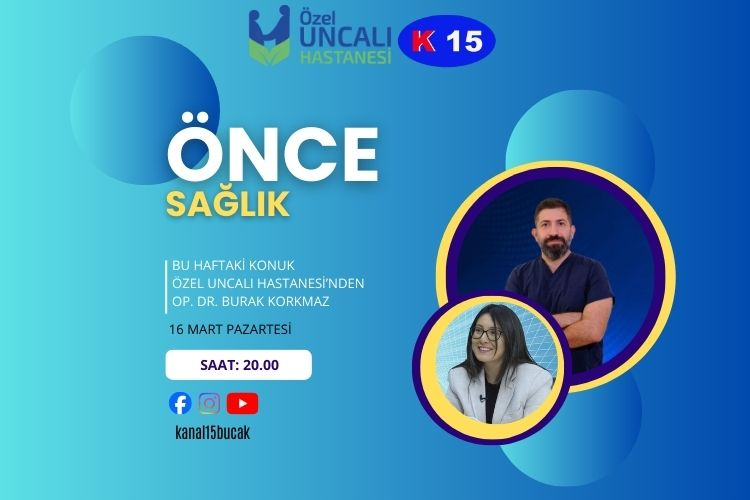 Kanal 15 ekranlarında yayınlanan “Önce Sağlık” programının bu haftaki konuğu, Op. Dr. Burak Korkmaz olacak.