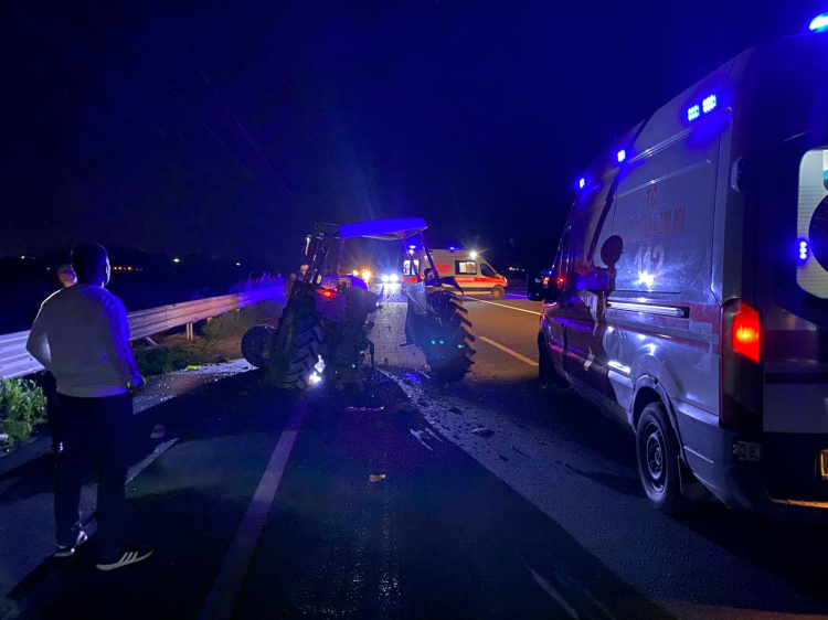 Selçuk T. yönetimindeki plakası henüz öğrenilemeyen traktör, Yumurtalık yolunun otoyol köprüsü civarında Bekir T. idaresindeki plakası öğrenilemeyen otomobille çarpıştı. Çarpışmanın etkisiyle traktör ikiye bölündü.