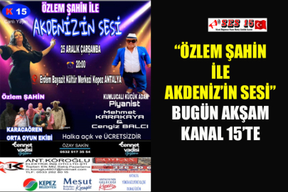 Kanal 15 ekranlarında 15 günde bir Çarşamba akşamları yayınlanan “Özlem Şahin ile Akdeniz’in Sesi” programı bugün akşam canlı yayınla sizlerle olacak.
