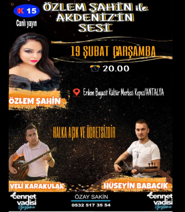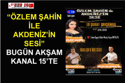 Kanal 15 ekranlarında 15 günde bir Çarşamba akşamları yayınlanan “Özlem Şahin ile Akdeniz’in Sesi” programı bugün akşam canlı yayınla sizlerle olacak.