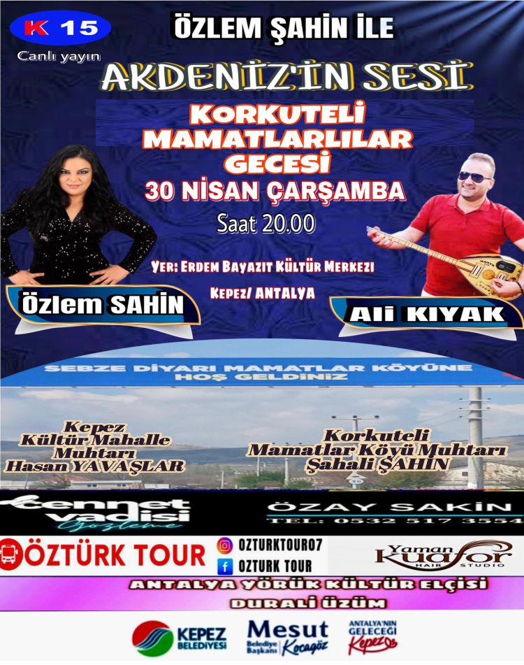 Kanal 15 ekranlarında Çarşamba akşamları yayınlanan “Özlem Şahin ile Akdeniz’in Sesi” programı bugün akşam sezon finaliyle sizlerle olacak.