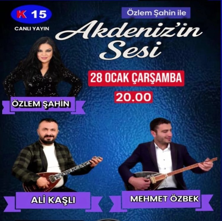 Kanal 15 ekranlarında 15 günde bir Çarşamba akşamları yayınlanan “Özlem Şahin ile Akdeniz’in Sesi” programı, bugün akşam canlı yayınla sizlerle olacak.