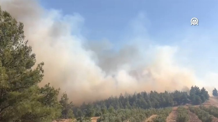 Ekipler, rüzgarın etkisiyle yayılan yangını kontrol altına almak için çalışmalarını sürdürüyor.
