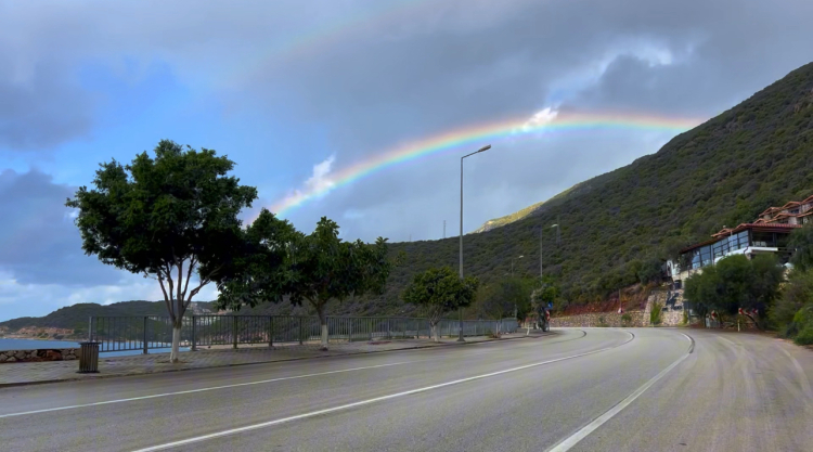 Antalya'nın Kaş ilçesinde sabah saatlerinde etkili olan yağışın ardından gökkuşağı oluştu.