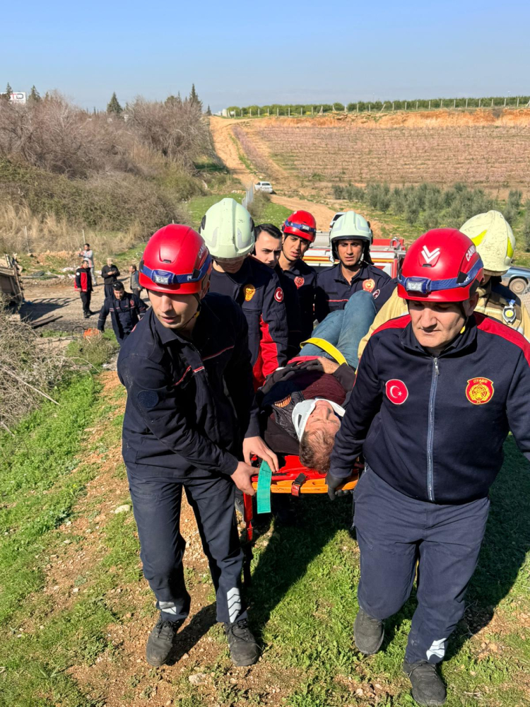 İtfaiye ekiplerince sıkıştığı yerden kurtarılan yaralı, sağlık ekiplerince hastaneye kaldırıldı.