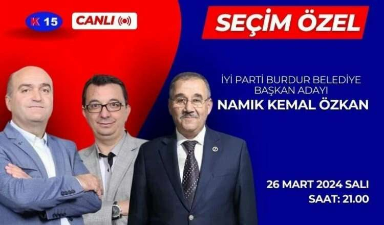 Seçim Özel’in bugün akşamki konuğu, İYİ Parti Burdur Belediye Başkan Adayı Namık Kemal Özkan olacak. Moderatör Bilal Karasakal ve Burdur Gazeteciler Cemiyeti Başkanı Kürşat Tuncel soracak, İYİ Parti Burdur Belediye Başkan Adayı Namık Kemal Özkan yanıtlayacak. Bugün akşam saat 21.00’de yayınlanacak olan, “Seçim Özel” programını sakın kaçırmayın.