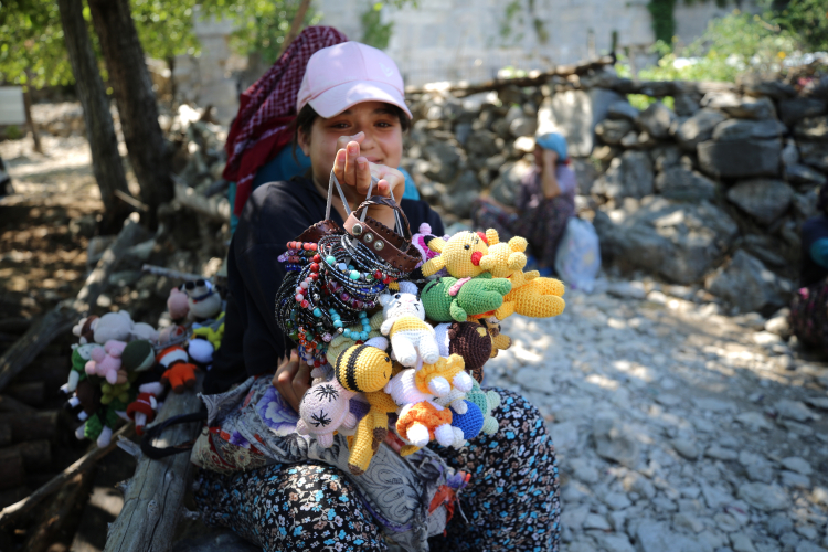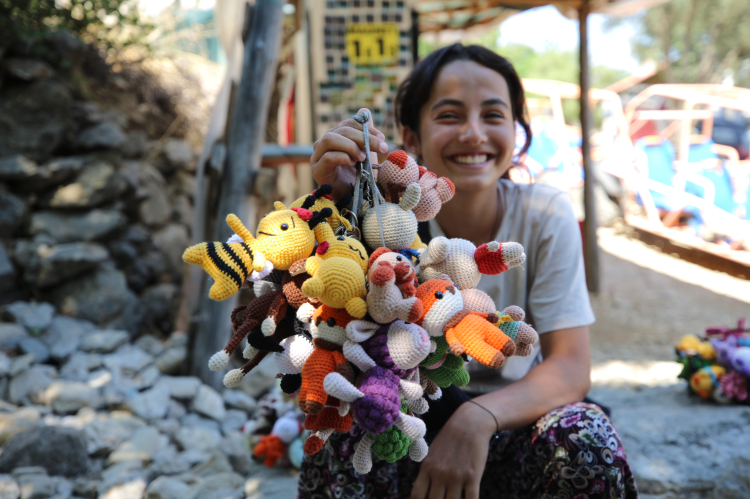 Selge Antik Kenti'nin hemen yanında el işi bebek satarak harçlık kazanan Melis Öğren de okulundan dolayı kışları Manavgat'ta, yazları ise doğup büyüdüğü antik kentte, amigurumi bebek örerek aile ekonomisine katkıda bulunmaya çalıştığını kaydetti.