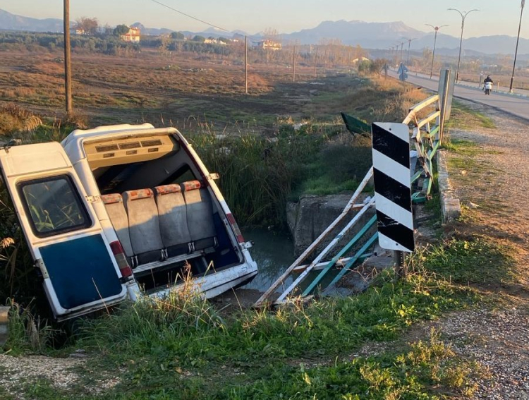 Antalya’nın Serik ilçesinde kontrolünü kaybeden minibüs sulama kanalına düştü.