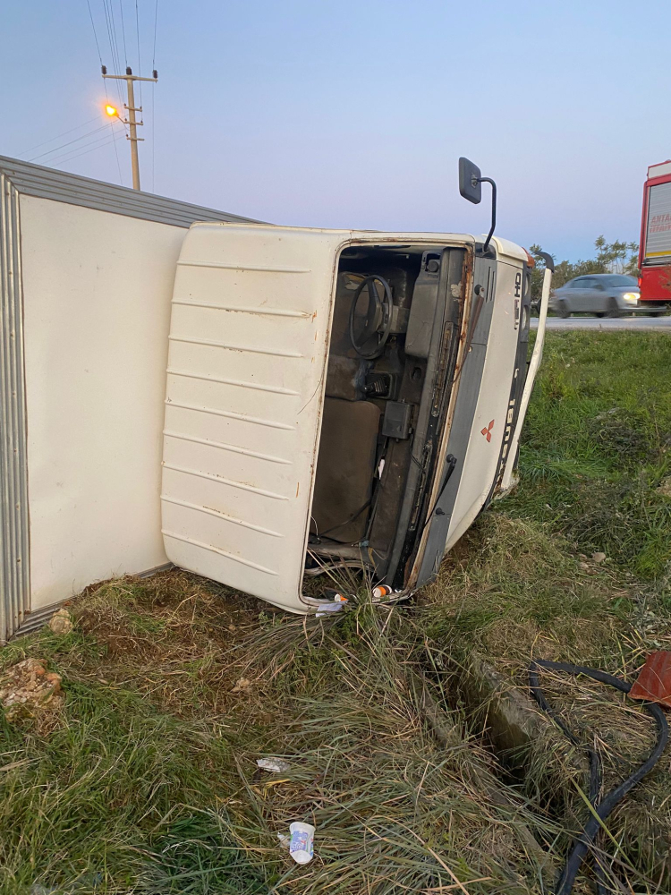 M.T. idaresindeki 07 ATN 459 plakalı kamyonet, Antalya-Alanya D-400 kara yolu Çandır Kavşağı yakınlarında şarampole devrildi.