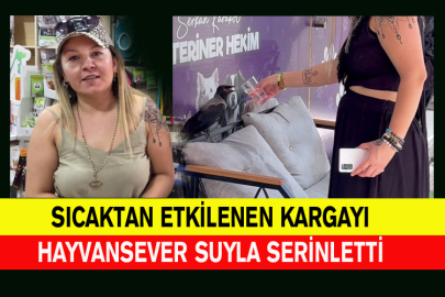 Kuşpınar Mahallesi Kıbrıs Şehitleri Caddesi'nde bitkin haldeki kargayı gören İlknur Şahin, kuşu işlettiği petshopun önündeki gölgelik alana getirdi.