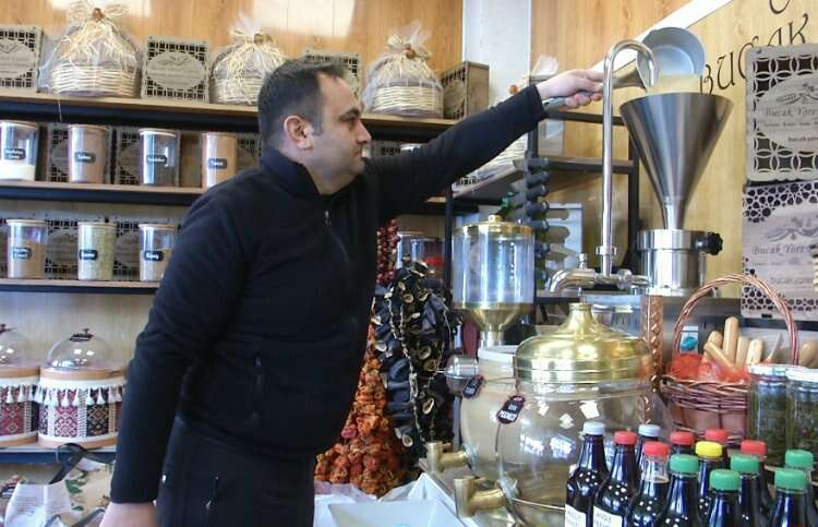 İsa Satılmış, “Bizim başlıca ürünümüz Bucak tarhanası. Kış aylarının olmazsa olmazı sofraların vazgeçilmezi en başta tarhana rağbet görüyor. Sonra tahin, insanın içini sıcak tuttuğu için rağbet görüyor. Çok tüketilen ürünlerden biri de Bucak Salebi. Bucak tarhanasının kilosu şu anda 150 TL , meşhur bir ürünümüz. Şehir dışından da çok müşterilerimiz var, çok rağbet gören ürünlerimizden birisi de Bucak tarhanası. Bunun yanında pekmezimiz var, tahinle beraber kullanılabilecek olan üzüm pekmezimiz var, karadut pekmezi , andız pekmez, keçi boynuzu pekmezi var.