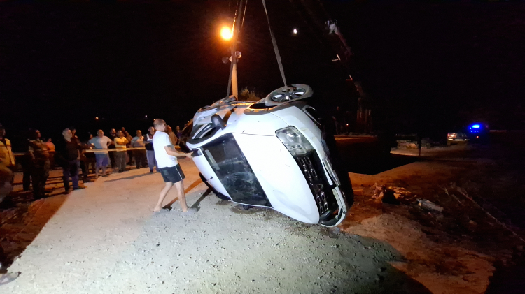 Raşit Akdeniz (46) idaresindeki 07 AAK 810 plakalı otomobil, gece saatlerinde Taşağıl Mahallesi Kaymaz Caddesi Nergizlik mevkisinde sulama kanalına devrildi.