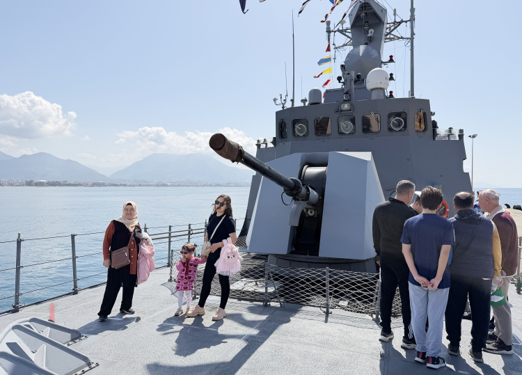 Gemiyi gün içerisinde çok sayıda vatandaş ziyaret etti. Askeri gemiyi yakından inceleme fırsatı bulan ziyaretçiler, fotoğraf çektirdi.