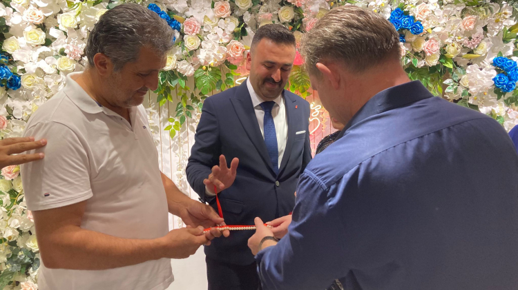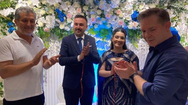 Çiftin yüzükleri, Burdur İl Emniyet Müdürlüğü’nde görevli Eğitim Şube Müdürü Özkan Büyükyılmaz ve Bucak Devlet Hastanesi Başhekimi Op. Dr. Tanzer Gökkaya tarafından takıldı.