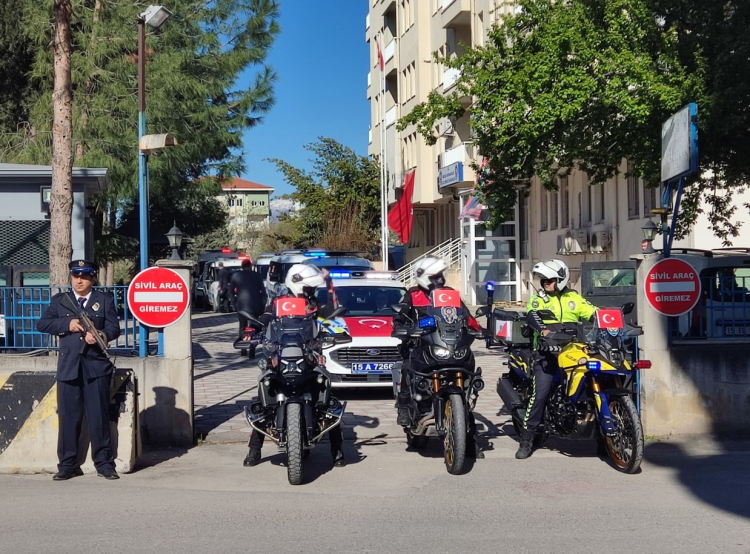 Türk Polis Teşkilatı’nın 180. kuruluş yıldönümü ve Polis Haftası dolayısıyla Bucak İlçe Emniyet Müdürlüğü’ne bağlı 3 motorize ekip ve 7 ekip aracından oluşan kortej, sirenler eşliğinde Cumhuriyet Meydanı’na geldi.