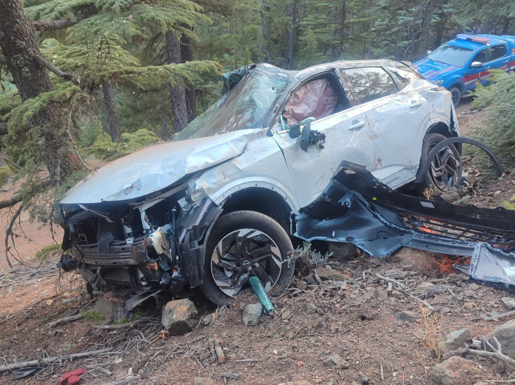 Fındıklı Mahallesi Çetinlik mevkisinde, sürücüsünün kontrolünden çıkan cip uçuruma yuvarlandı.