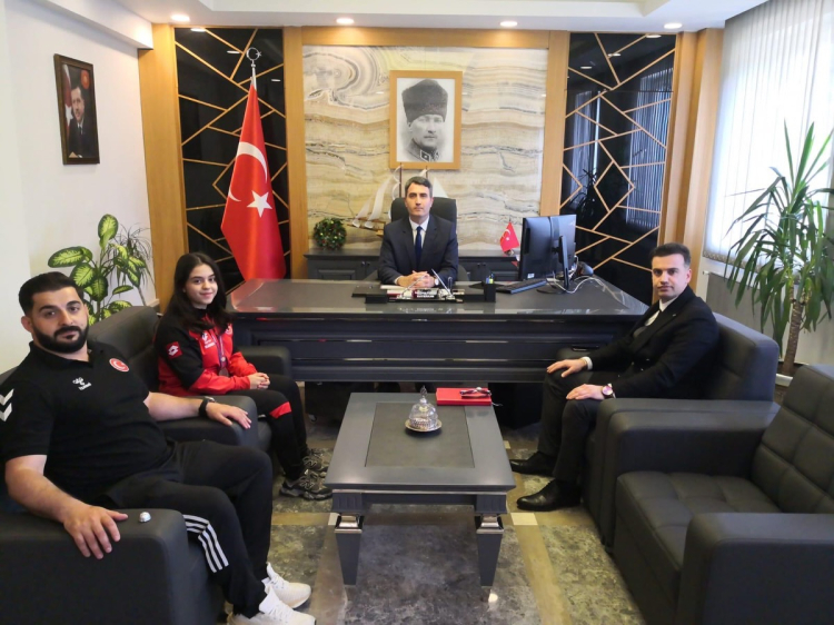 Ümitler Avrupa Sambo Şampiyonası”nda Avrupa üçüncüsü olan Ceylin Başarır, ve beraberindekiler Bucak Kaymakamı Can Kazım Kuruca'yı ziyaret etti