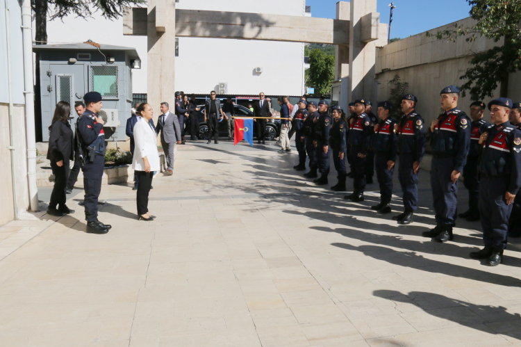 Vali Bilgihan programının devamında İlçe Jandarma Komutanlığı ve İlçe Emniyet Müdürlüğünü ziyaret etti.