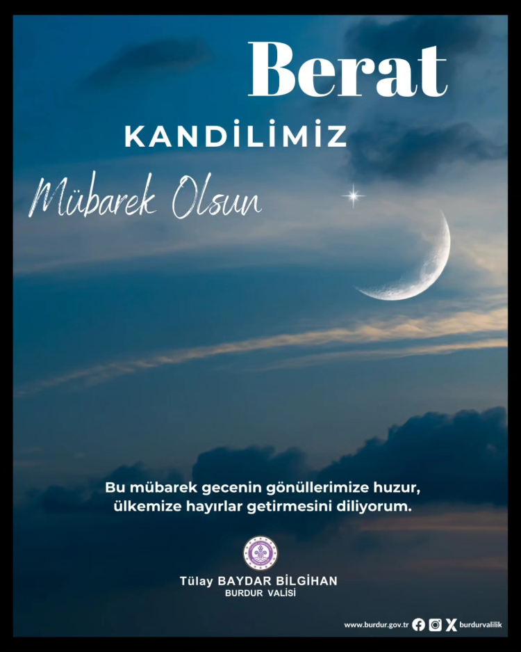 Burdur Valisi Tülay Baydar Bilgihan Berat Kandili dolayısıyla bir mesaj yayınladı.