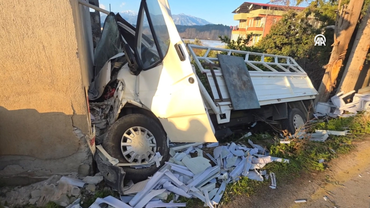 Arda Ö. (19) idaresindeki 48 AJV 964 plakalı kamyonet, Kıncılar Mahallesi Akbük mevkisinde yol kenarındaki eve çarptı.